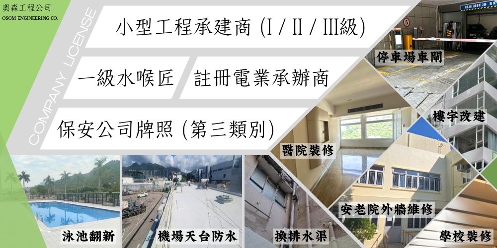 『奧森工程公司』有十多年裝修、保養及維修工程經驗,已完成的工程有住宅、工廈、商舖及社區中心等。