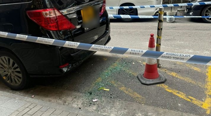 大角咀今午(8日)發生冧石屎意外。下午3時33分,警方接獲報案指利得街1-5號有石屎從天而降,擊中一輛中港牌七人私家車。據了解,墜落的石屎面積約5厘米乘100厘米,意外中幸無人受傷。