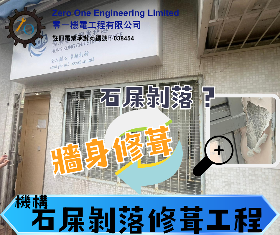 機構石屎剝落修葺工程-牆身都有皮膚病?-牆身告急!-油漆剝落?-裂痕凹凸?-還你靚靚牆身!-石屎剝落修葺-石屎剝落-修葺-牆身修葺-Wall-Repair-Maintenance-Renovation-cracks-Patching
